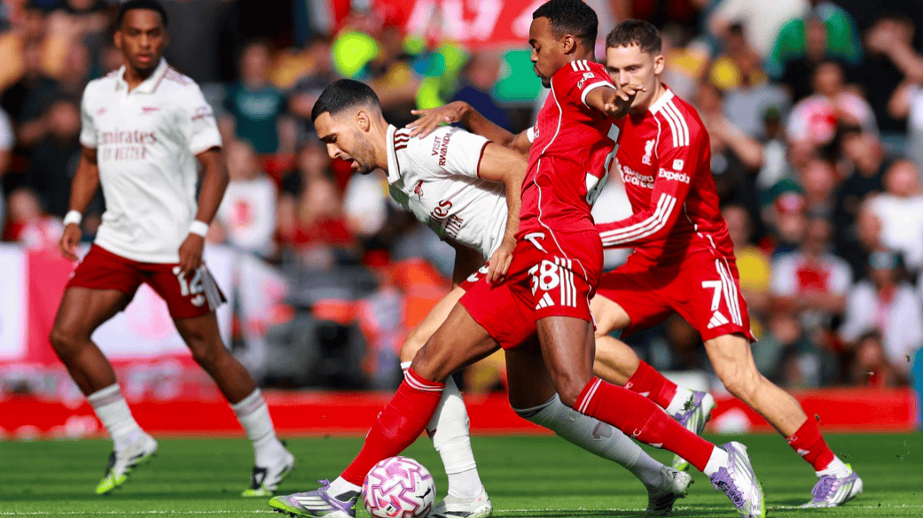 第33分钟,阿森纳后场玩火,拉亚的传球,直接被范戴克断下,范戴克的传球被赖斯破坏,麦卡利斯特的射门,被三人合力封堵。